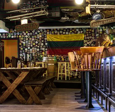 The place offers a lot of space. Its youthful setting draws younger people and students. It’s a great place to watch a basketball game on TV or to play foosball. Like the other Šnekutis pubs in Vilnius, the bar on St. Nicolas Street also serves its real farmhouse beer and savory Lithuanian dishes.