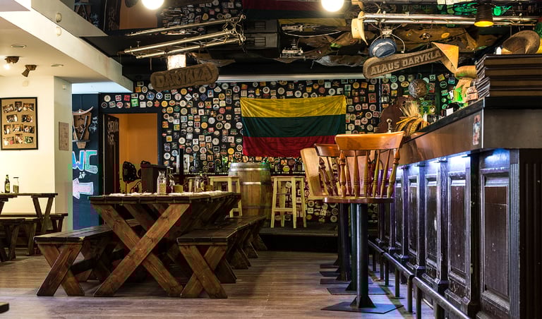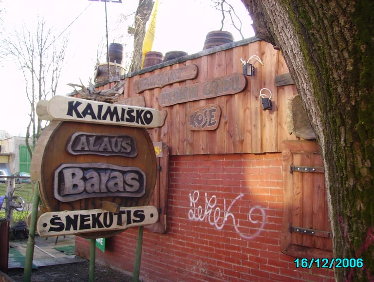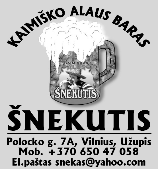 Darkness and a wooden interior patched with boar fur still prevail in the pub. The visitor finds himself surrounded by many old electric appliances, brewing supplies, and other trifles found these days only at a flea market. The pub is especially liked by the youth who wander the streets of Užupis. Students from the countryside also frequent Šnekutis, because only here they can indulge in real craft beer and taste rustic traditional Lithuanian dishes.