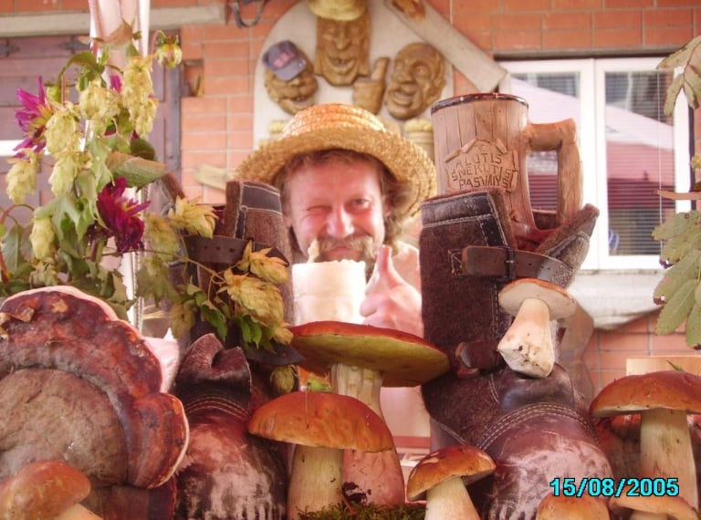 Valentas likes beer for this one particular reason—that it can open up people’s mouths and souls. That’s why he likes the word “šnekutis” (loosely translated as “a chatterbox”). And that’s how the legendary beer brand name—Šnekutis—was coined. Today the name is recognized by unique rustic flavors of its beer and by Valentas’s smile, visible from under a straw hat. His two thumbs up mean that he is happy twofold.
