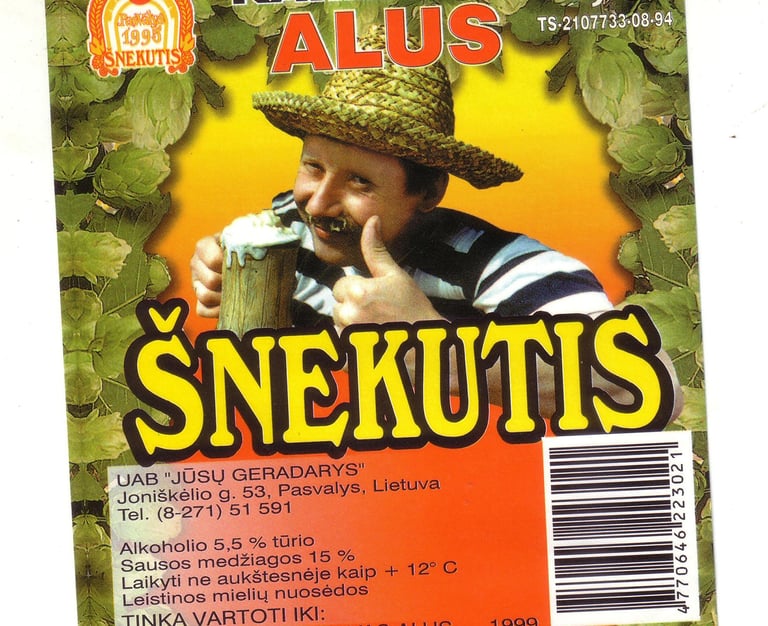 Šnekutis beer was naturally fermented and “live.” The latter feature caused some problems. One day, a Šnekutis beer bottle exploded on a grocery store shelf. The brewers hadn’t taken into account that in warm temperatures yeast continues to do its job and that the beer continued to mature. The store owner asked politely no longer to have delivered this type of beer.